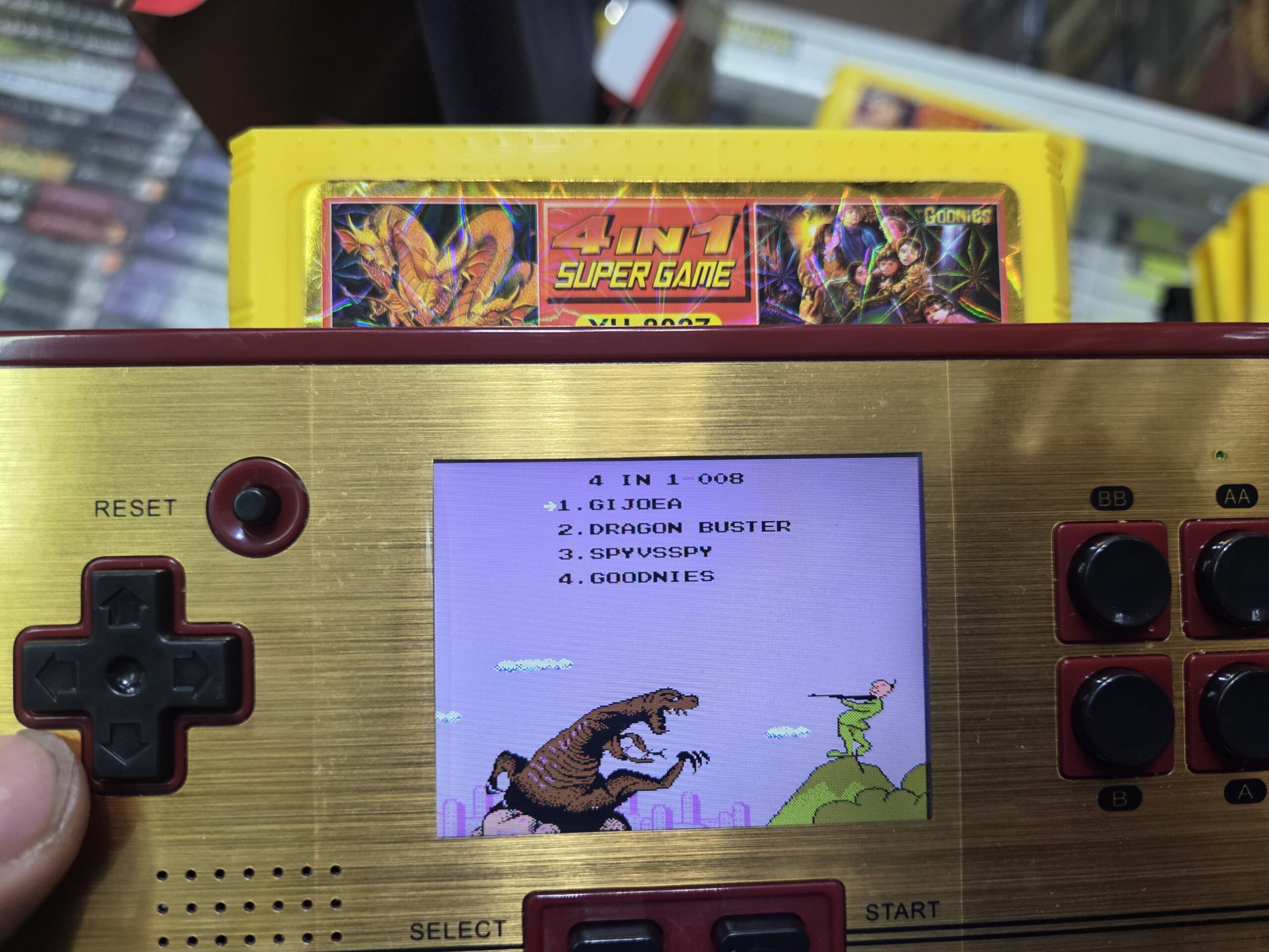 Inicio/NINTENDO/FAMILY GAME/FAMICOM/Juegos Actuales y 90s/4 In 1 | YH-8027 / Goonies – Gi Joe – y mas | Cartucho Compatible Family Game